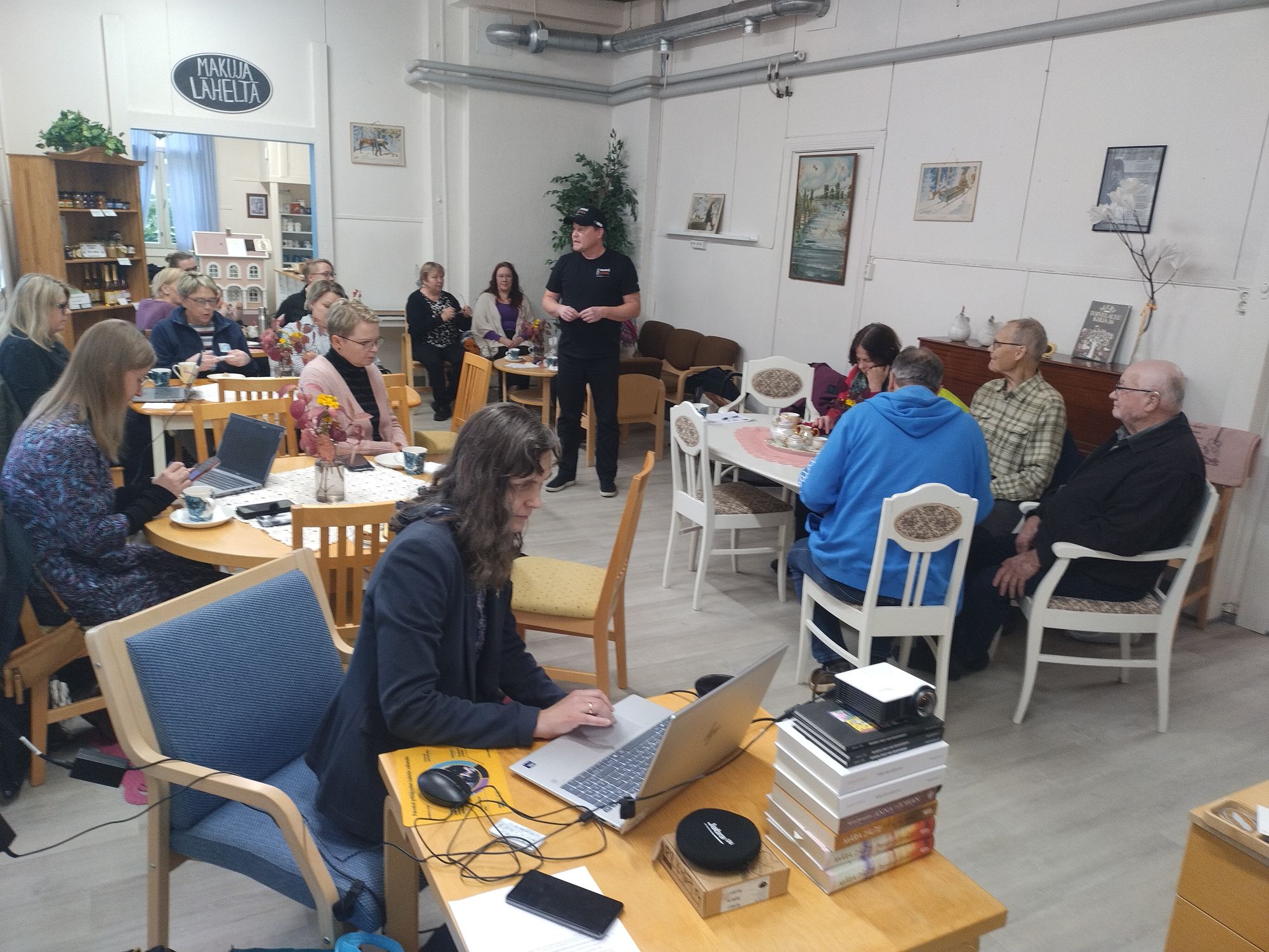 Hämäläinen-Koljonen päättää esittelykierroksen potentiaalisille kyläkummeille loppuvuoden aikana – Kesälahden Sovintolassa kyläkummiutta hän esitteli kylä- ja etätyöillassa 7. lokakuuta 2025.