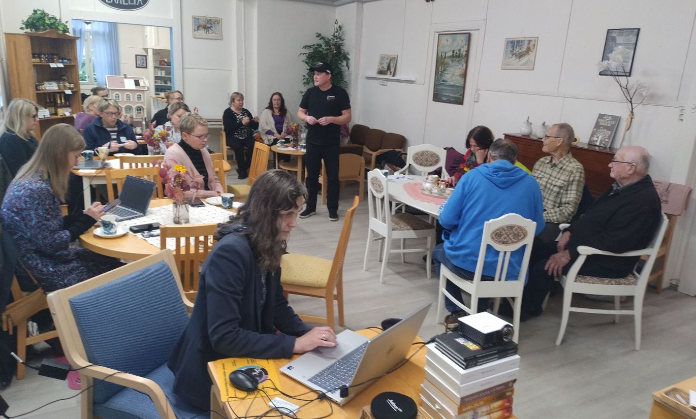 Kesälahden kyläillassa oli parikymmentä ihmistä kuulolla monipaikkaisuudesta, Kiteen etätyöpisteistä sekä kyläkummiudesta. Kuva: Riitta Ryynänen